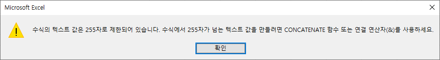 Text 255이상일 경우에는 아래와 같은 메시지가 출력 됩니다.